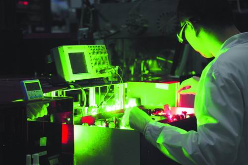 研究人員在控制氫分子化學(xué)鍵取向的激光器前工作。受訪(fǎng)者供圖