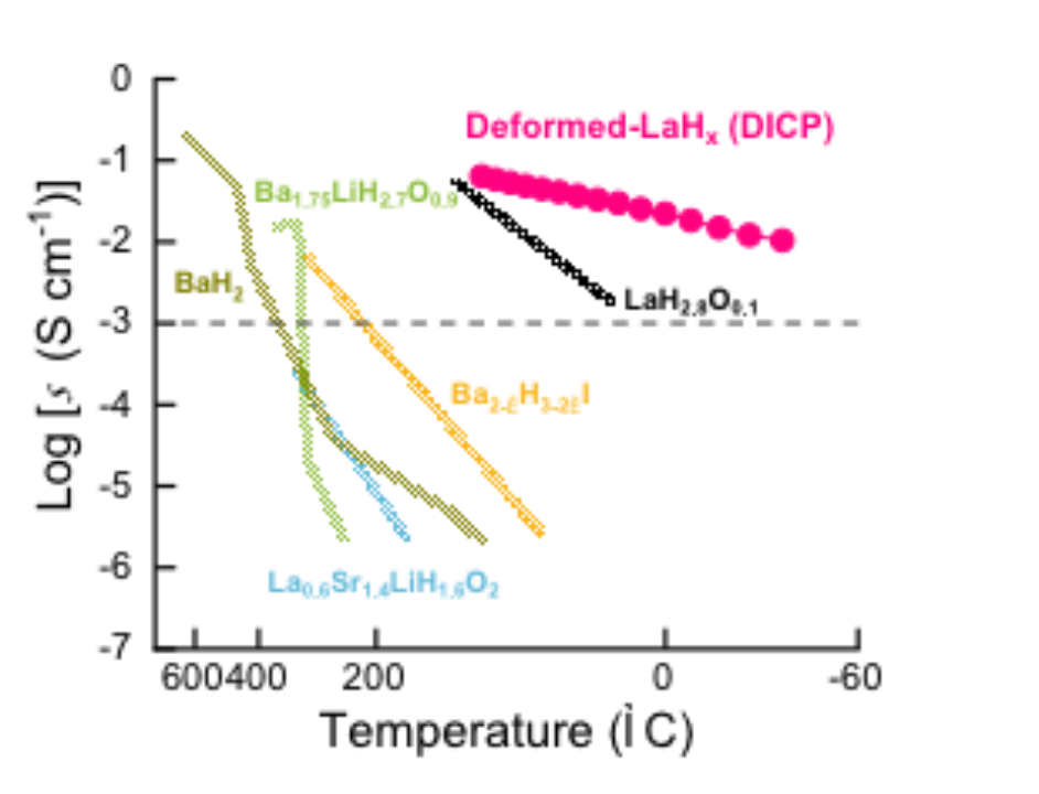 通過實驗,研究團(tuán)隊驚喜地發(fā)現(xiàn),物理性質(zhì)發(fā)生變化的氫化鑭材料,在抑制電子傳導(dǎo)的同時,并沒有對氫負(fù)離子的傳導(dǎo)造成太大干擾,可以在“震”住電子轉(zhuǎn)移的同時,仍舊“維持”氫負(fù)離子快速傳輸,最終獲得了優(yōu)異的氫負(fù)離子傳導(dǎo)特性。