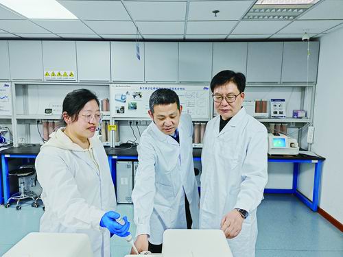 李海洋(右)和花磊(中)在實(shí)驗(yàn)室工作。受訪者供圖