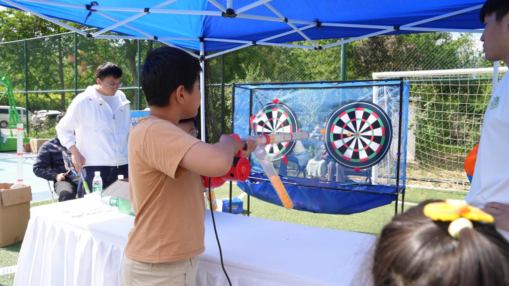 公眾在中國科學院力學研究所體驗“乒乓球機關(guān)炮”。(中國科學院力學研究所供圖)