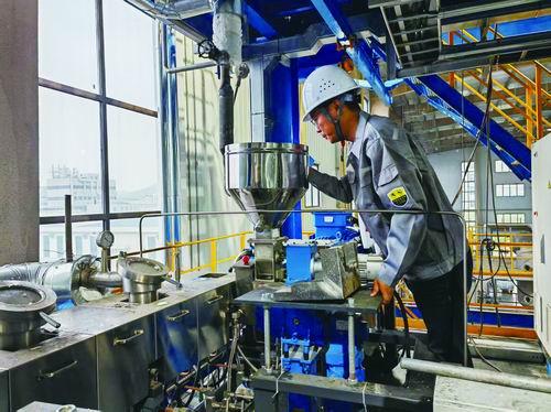 “基于團(tuán)隊(duì)在高分子材料領(lǐng)域的技術(shù)積淀,我們?cè)谘芯恐邪l(fā)現(xiàn)鈦類催化劑可與現(xiàn)有工藝裝備實(shí)現(xiàn)深度耦合,通過(guò)催化反應(yīng)路徑能直接合成目標(biāo)產(chǎn)物聚乙醇酸,并順利完成實(shí)驗(yàn)室級(jí)小試驗(yàn)證。”王瑞回憶道,“我們團(tuán)隊(duì)一直以來(lái)都十分注重工業(yè)化應(yīng)用,在取得階段性成果后,就立刻按照‘小試-中試-工業(yè)示范’的技術(shù)路徑逐級(jí)放大?!?/p>