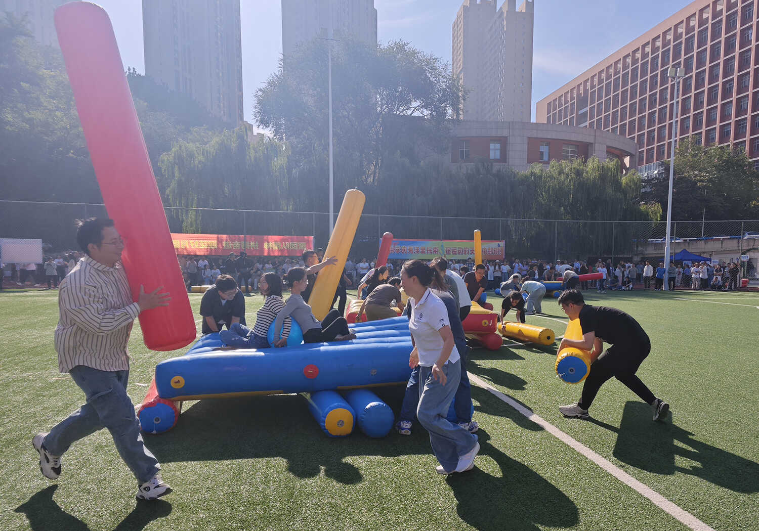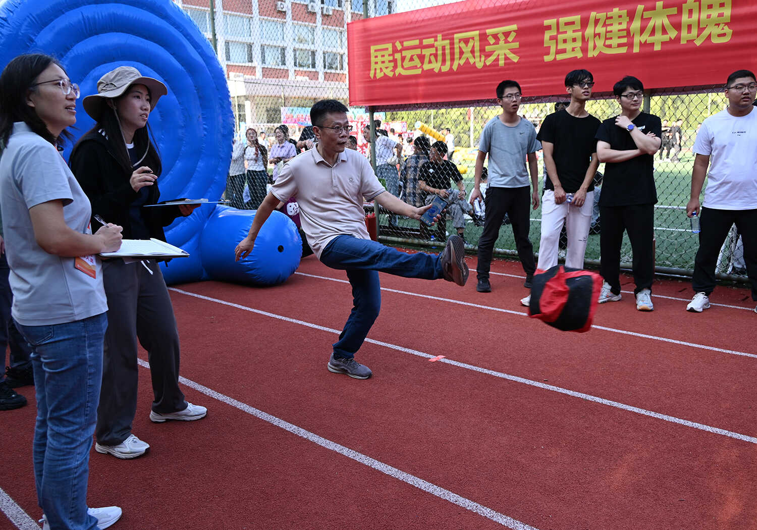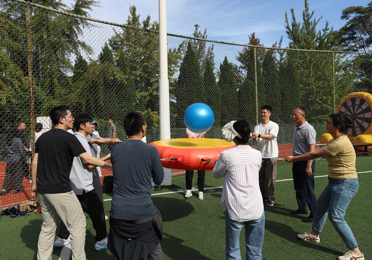 賽事活動(dòng)分別在A、B兩個(gè)場(chǎng)地同時(shí)火熱開賽,其中A場(chǎng)地以團(tuán)體賽為主,B場(chǎng)地以個(gè)人賽為主。本次活動(dòng)精心設(shè)置了集競(jìng)技性、協(xié)作性與趣味性于一體的“齊心協(xié)力”“開心麻花”等9個(gè)項(xiàng)目,吸引了19支隊(duì)伍(聯(lián)隊(duì))參與,涵蓋科研、職能部門的老中青職工和研究生。賽場(chǎng)上,運(yùn)動(dòng)員們?nèi)橥度?,團(tuán)結(jié)協(xié)作,為團(tuán)隊(duì)榮譽(yù)奮力拼搏;賽場(chǎng)邊,觀眾們的加油聲、歡呼聲、笑聲此起彼伏,整個(gè)運(yùn)動(dòng)場(chǎng)沉浸在一片歡樂(lè)、熱烈、奮進(jìn)的海洋中。經(jīng)過(guò)半天的激烈角逐,各項(xiàng)賽事圓滿結(jié)束。