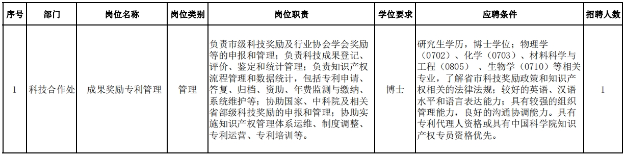 中國(guó)科學(xué)院大連化學(xué)物理研究所本著“按需設(shè)崗、公開(kāi)招聘、競(jìng)爭(zhēng)上崗、擇優(yōu)聘用”的原則,根據(jù)《大連化物所事業(yè)編制工作人員招聘實(shí)施細(xì)則(試行)》有關(guān)要求,現(xiàn)面向社會(huì)公開(kāi)招聘職能部門(mén)工作人員1名,具體信息如下: