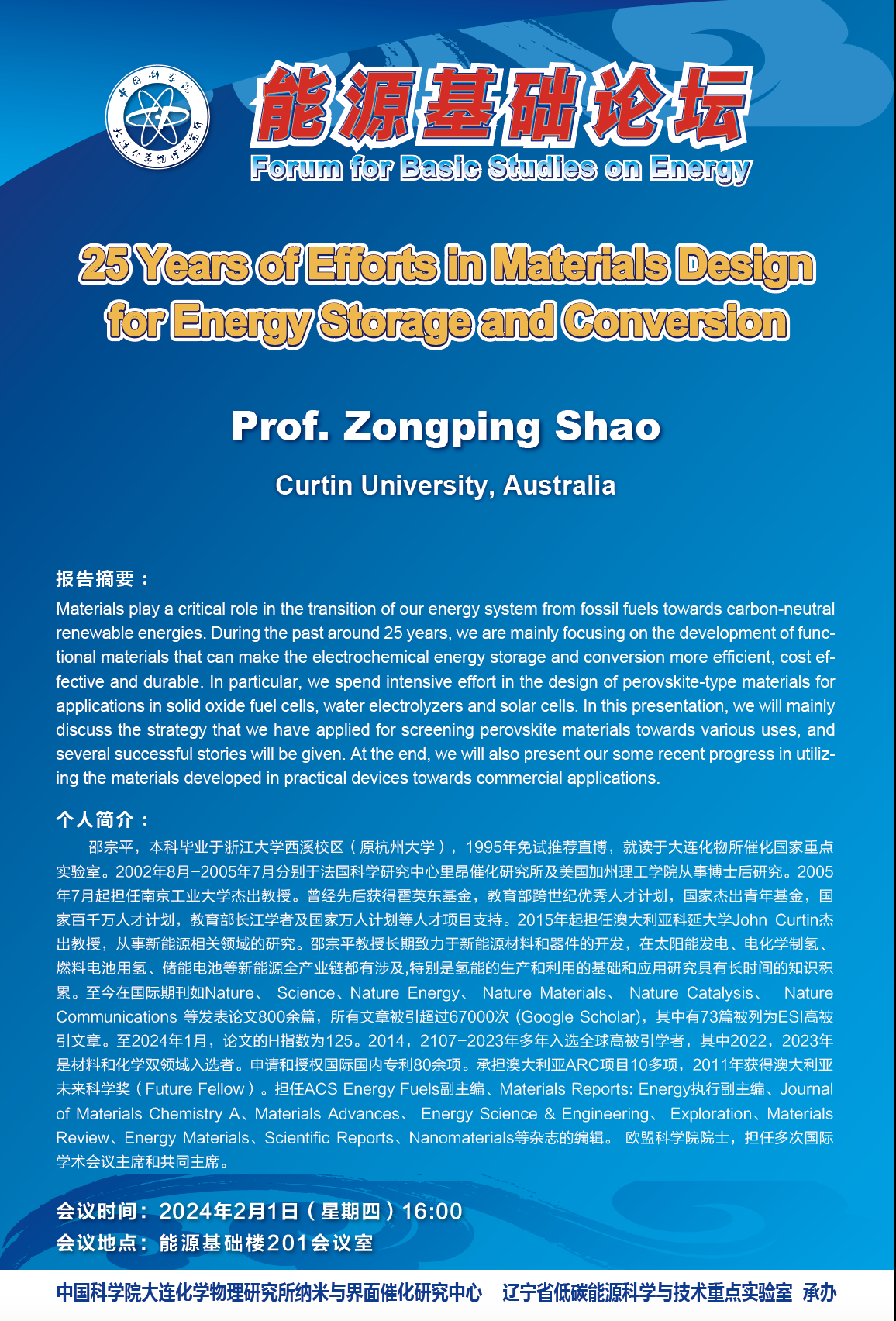 關(guān)于舉行“能源基礎(chǔ)論壇——25 Years of Efforts in Materials Designfor Energy Storageand conversion”的通知