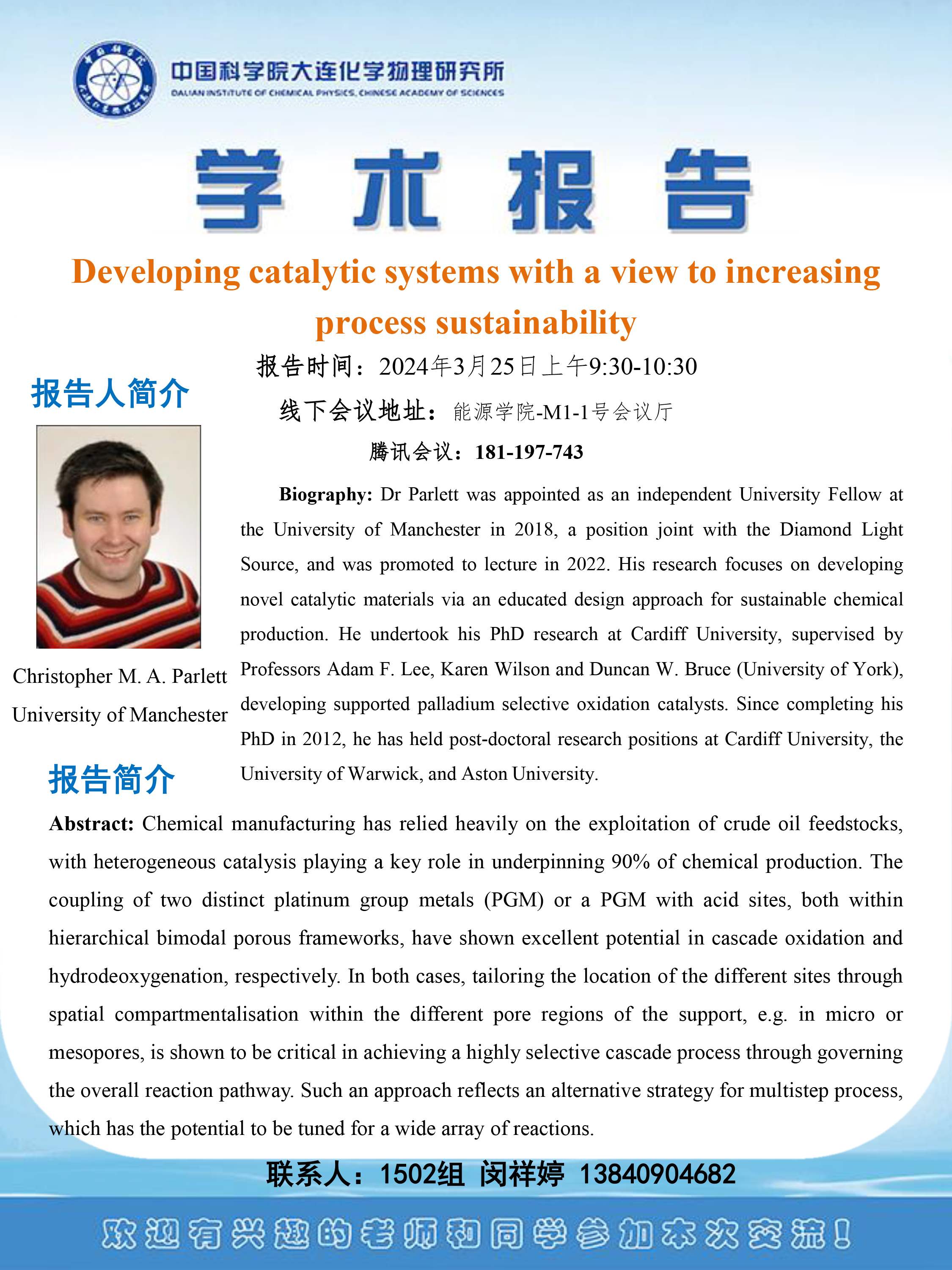 關(guān)于舉行“Developing catalytic systems with a view to increasing process sustainability”學術(shù)報告會的通知