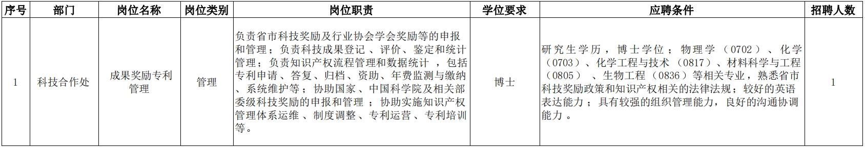 中國(guó)科學(xué)院大連化學(xué)物理研究所本著“按需設(shè)崗、公開(kāi)招聘、競(jìng)爭(zhēng)上崗、擇優(yōu)聘用”的原則,根據(jù)《大連化物所事業(yè)編制工作人員招聘實(shí)施細(xì)則(試行)》有關(guān)要求,現(xiàn)面向社會(huì)公開(kāi)招聘職能部門工作人員1名,具體信息如下: