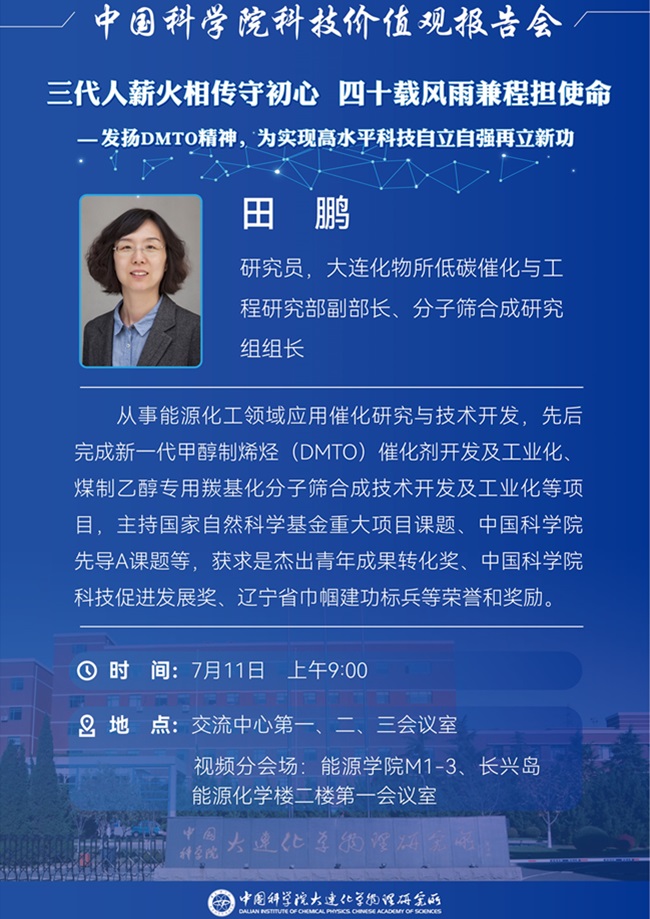 2024年中國科學(xué)院科技價值觀報告會暨科學(xué)家精神宣講團(tuán)報告會(第十六期)將于7月11日(星期四)9:00在交流中心一、二、三會議室舉行。本期宣講人為DNL12田鵬研究員,報告主題為《三代人薪火相傳守初心,四十載風(fēng)雨兼程擔(dān)使命——發(fā)揚(yáng)DMTO精神,為實(shí)現(xiàn)高水平科技自立自強(qiáng)再立新功》。歡迎參加!