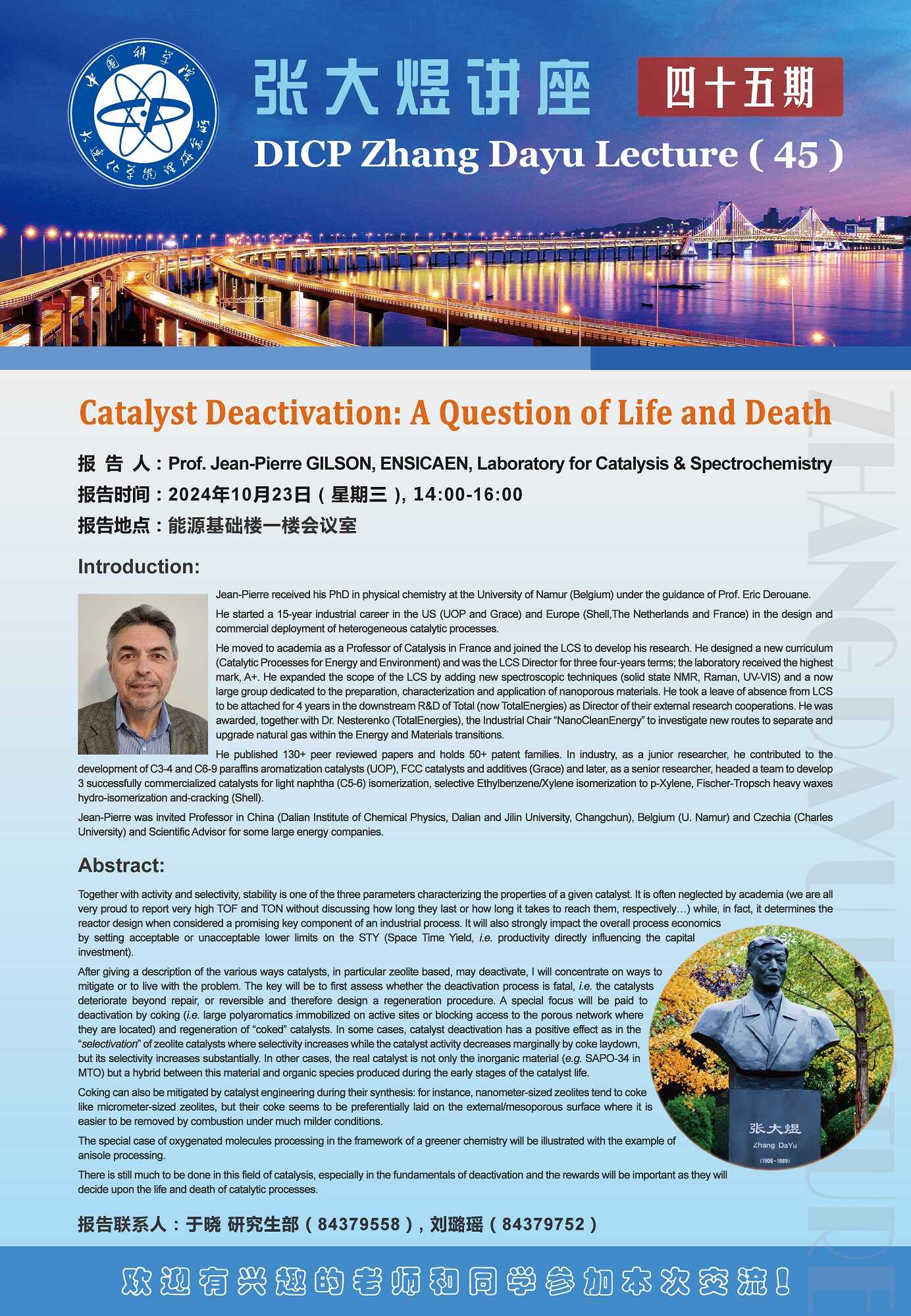關(guān)于舉行“第四十五期張大煜講座——Catalyst Deactivation: A Question of Life and Death”的通知