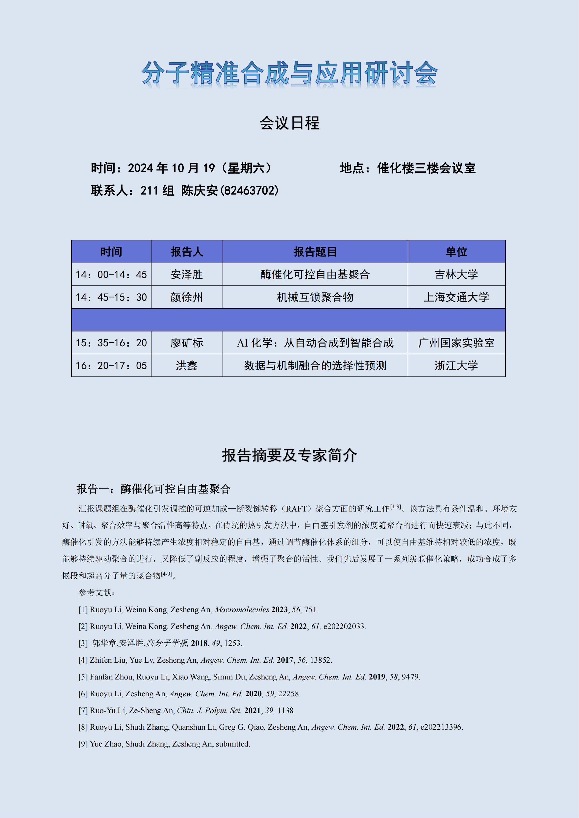 關(guān)于舉行“分子精準(zhǔn)合成與應(yīng)用研討會(huì)”的通知