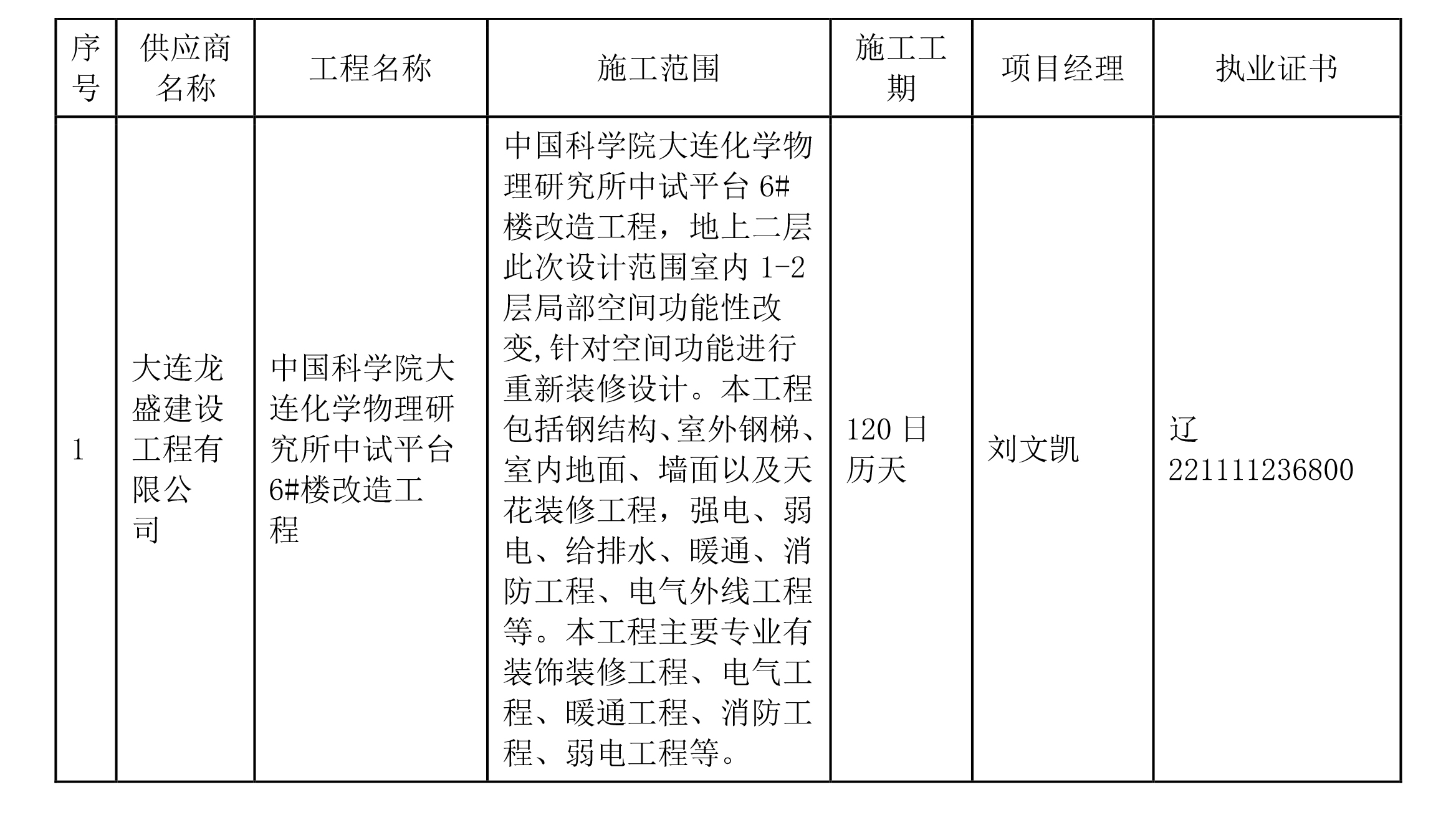 供應(yīng)商名稱:大連龍盛建設(shè)工程有限公司