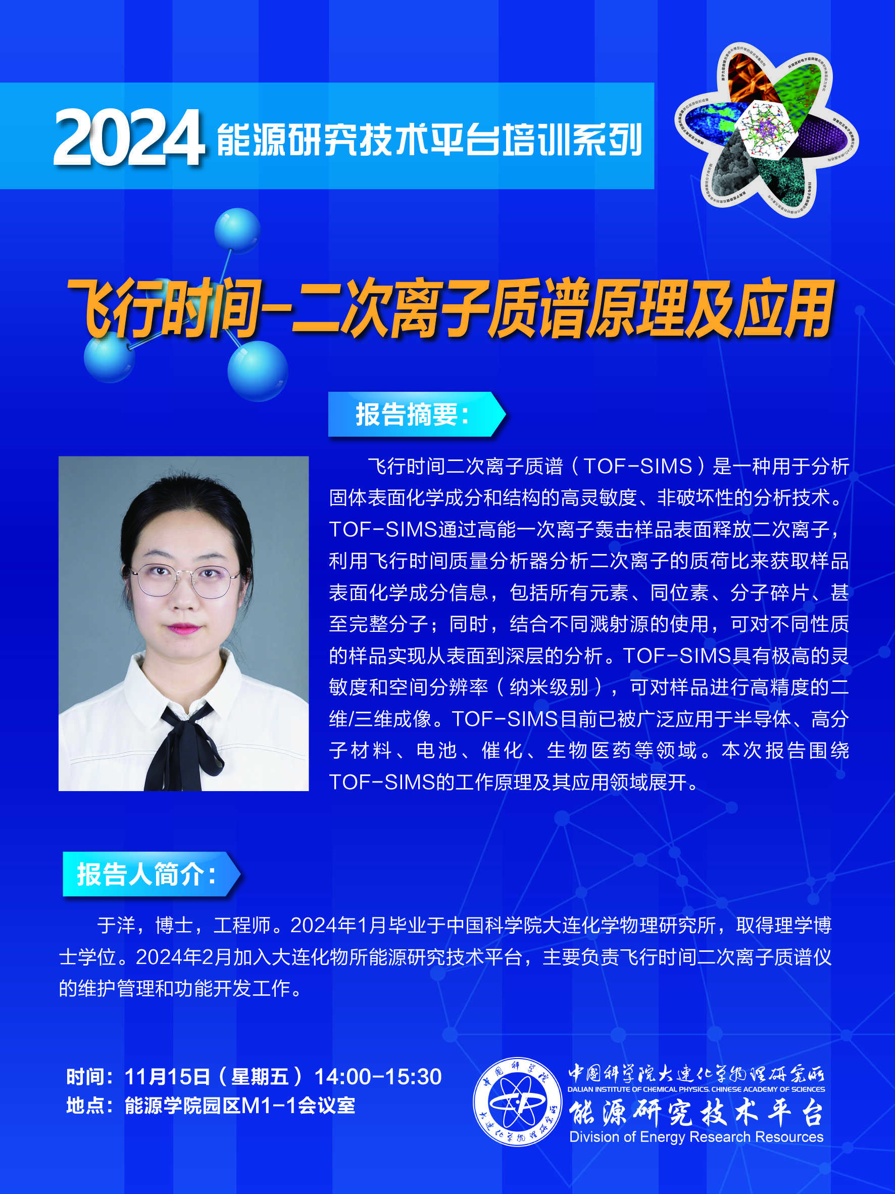關于舉辦“2024年度能源研究技術平臺培訓系列——飛行時間二次離子質(zhì)譜原理及應用”通知