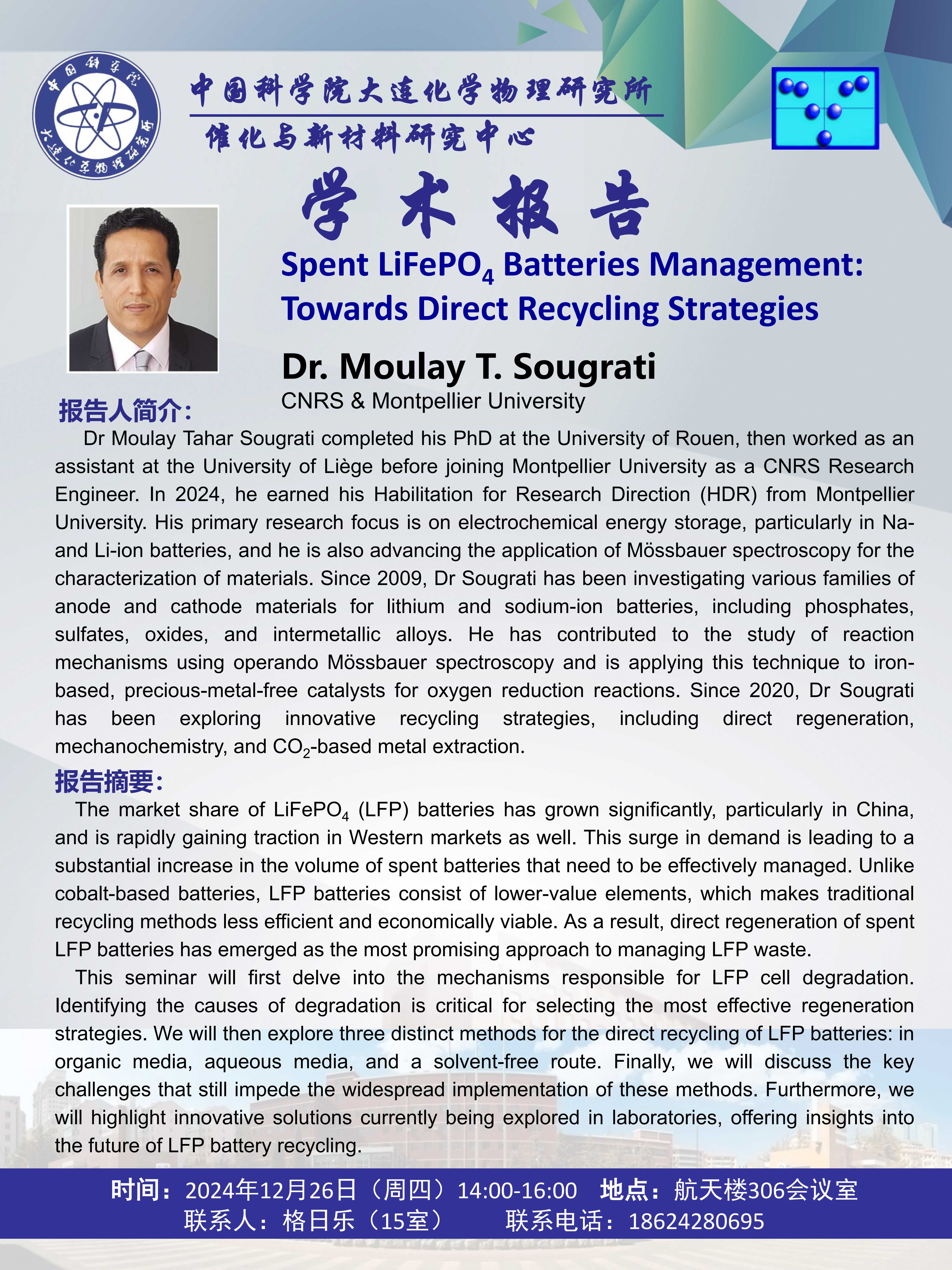 關(guān)于舉行“Spent LiFePO4 Batteries Management: Towards Direct Recycling Strategies”學(xué)術(shù)報告會的通知
